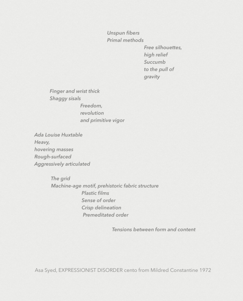 Feeding the conceptualism were diverse sources. From Albers’ Yale material studies to post-war Polish innovations in fiberwork, countercolonialism artists in South America to west coast basketry developments.