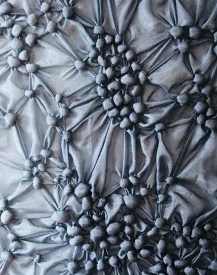 In the realm of quilt-derived arts Anna Wagner Ott of Ottawa used a wide range of shaping techniques in her textile-based works. In addition to wall- or floor-based assemblage Charles McGill of New York created quilts of unconventional materials such as deconstructed golf bags. Trapunto patterns offer dimensionality and shadow play in the quilting of Leeds artist Ruth Singer.