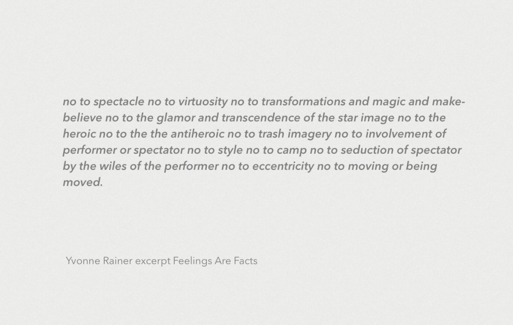 Even greater three-dimensionality is on offer in choreographic assemblage. Moving from what Yvonne Rainer termed the heroic posturing of ballet-derived performances, the years around 1961 that saw the brief life of Judson Dance Group in New York led to layering quotidian movements. This was practiced by Grand Union and individual choreographers such as Trisha Brown. A related genre involving Cagean chance or improvised steps such as Steve Paxton’s contact improvisation quickly dispersed through the dance world. At times dancers pigmented body parts to create records of their kinetics on cloth or paper.