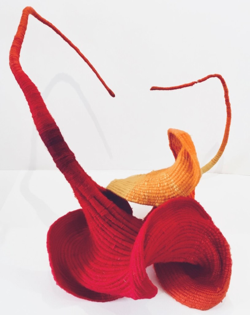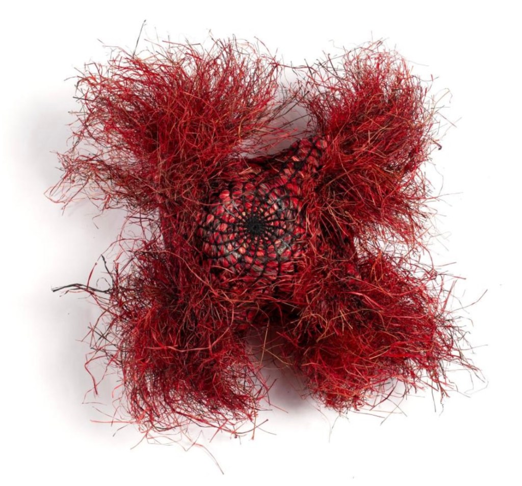 Knot again. The most recent revival, so to speak, of critical interest in fiberwork has circled from major institutional exhibition at Boston ICA to new books to a spate of twenties gallery mountings. Noteworthy that two well-conceived overview volumes, Fiber Sculpture 1960 to Present (2014) and Vitamin T: Threads And Textiles (2021) showed virtually uninterrupted planar entries. That they did not cover volumetric possibilities speaks to the sparsity of process vocabulary more than any lack of authorial effort. The artists in today’s essay attest this is a sculptural medium that not only awaits further innovation but is ripe for critiques that do make distinctions in process as much as in content.