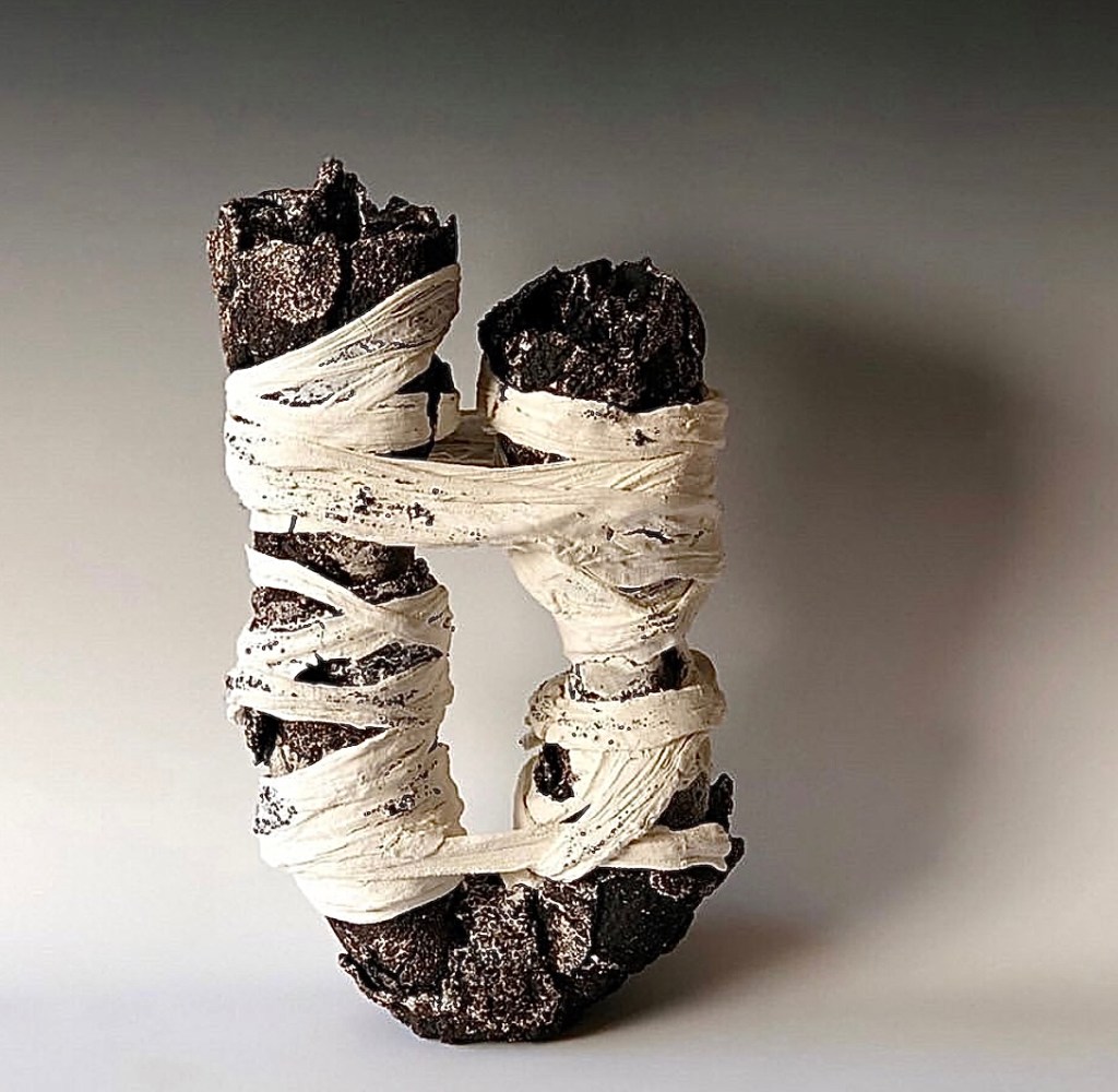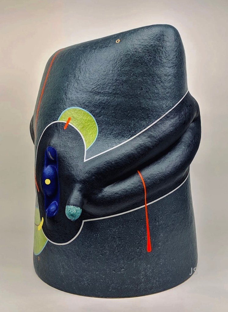 Gestural and constructed ceramics contribute a vital stream in art, the influence of modernism still flowing in fresh expressions more than a half-century after its emergence. A survey of ‘20s exhibitors reveals this vitality. The works are elemental. Desert spaces or moonscapes. Ocean floors or quarries. Meteors or Willendorfish stonecarved mother of us all. Ceramicist Bernard DeJonghe said “I’ve always been conscious of man being part of the mineral universe.”