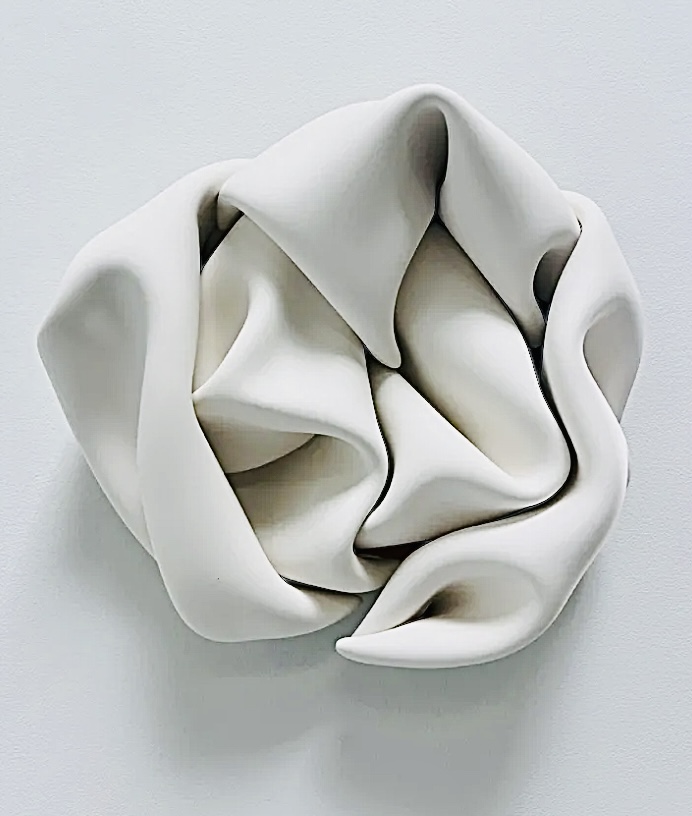 Within the sphere of constructive ceramics are smooth textures evoking ice by Leora Brecher, Pennsylvania; waveform patterns by Jeannine Marchand, Puerto Rico; componented outlines by Mincheng Wang, China, now studying at Alfred University.